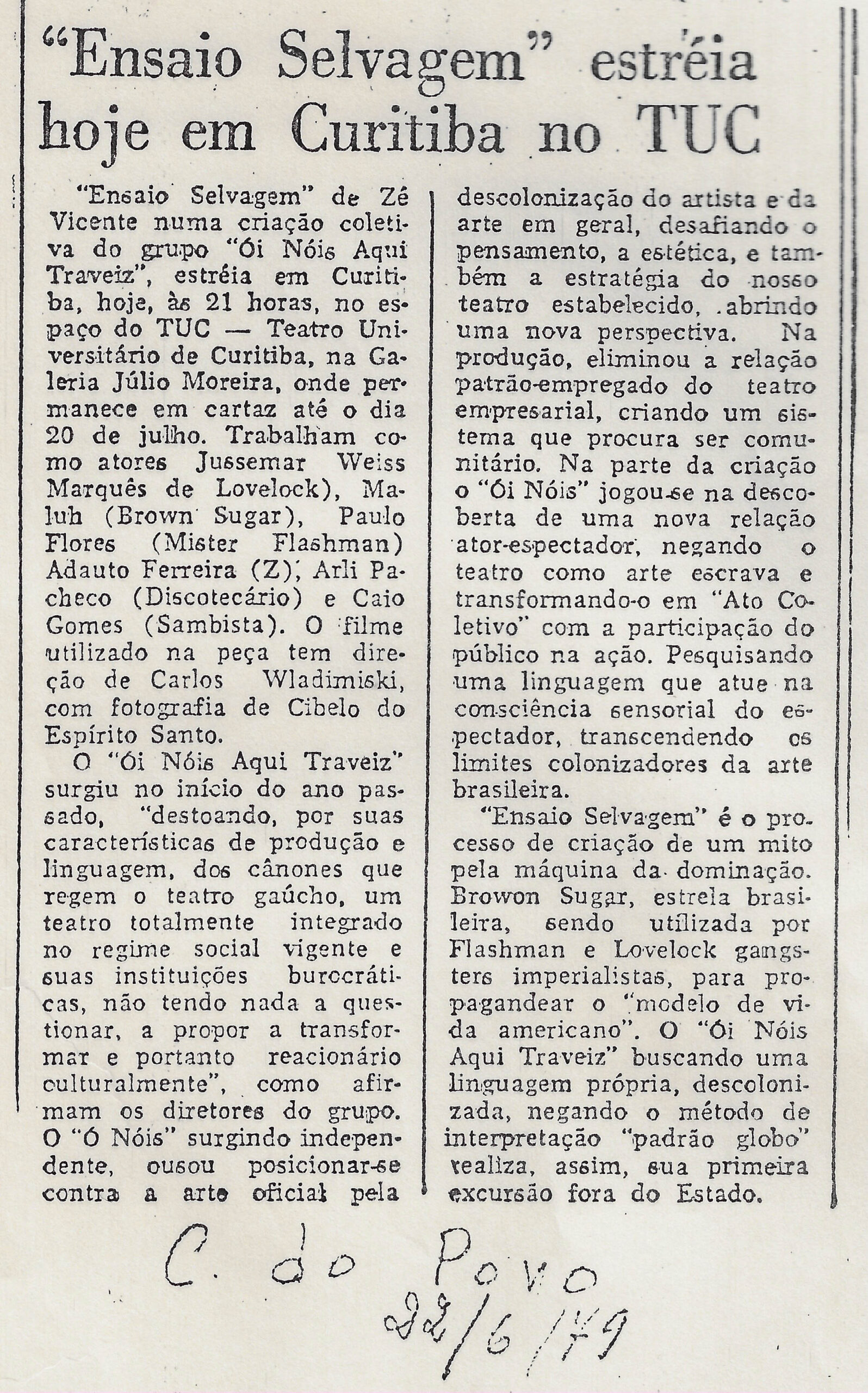 • ‘Ensaio Selvagem’ estréia hoje em Curitiba no TUC