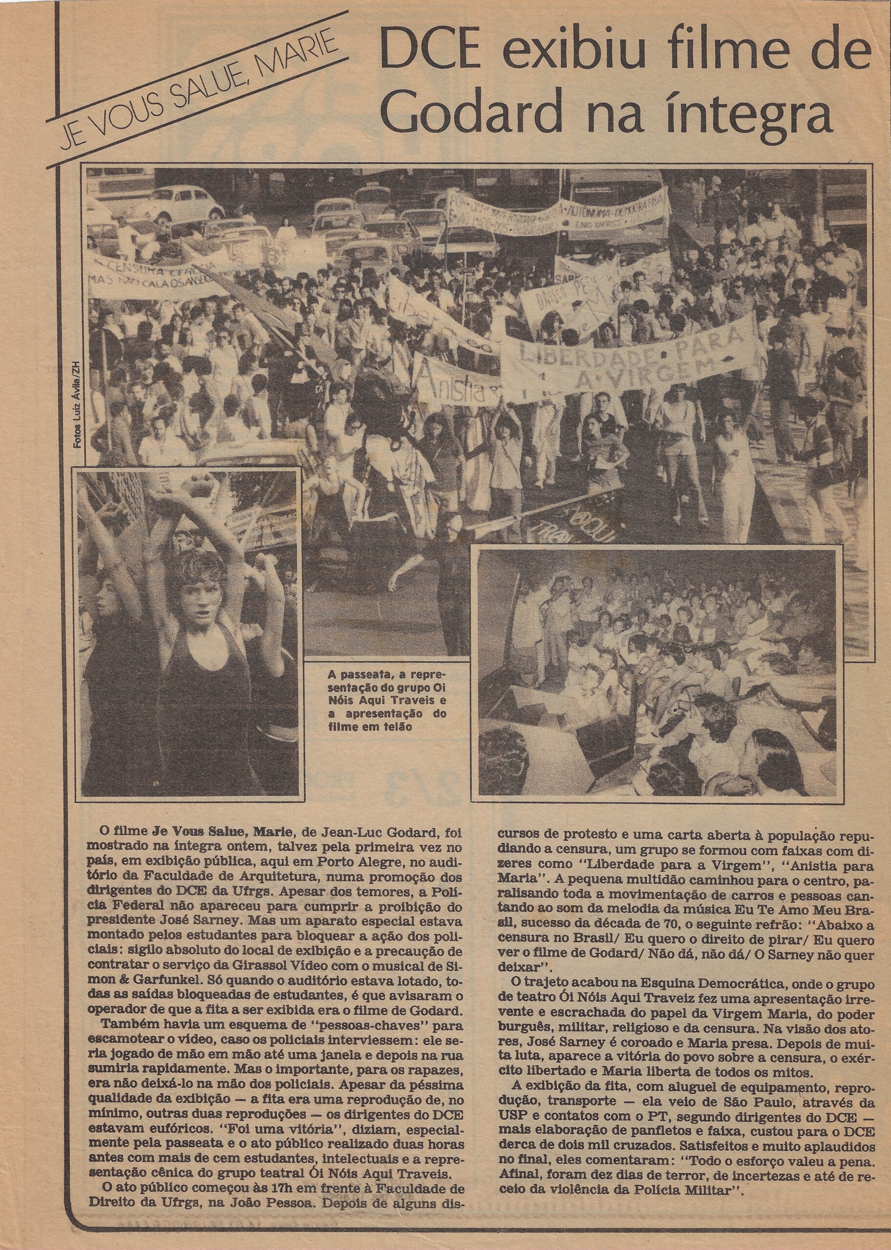 • JE VOUS SALUE MARIE – DCE exibiu filme de Godard na íntegra