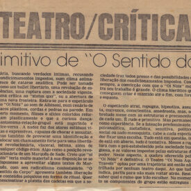 Uma proposição plástica é o que o grupo teatral Ói Nóis Aqui Traveiz tenciona apresentar hoje amanhã e quarta-feira às 21h na sua sede (Ramiro Barcelos 485). O Sentido do Corpo é uma proposta de utilização do corpo como elemento sensitivo de todas e quaisquer emoções que nos são sujeitas ou suportáveis. Passa-se dentro de um organismo que tanto pode ser um coração um tráfero ou um cérebro. O cenário sugere uma membrana para dar idéia do nascer de uma consciência emotiva que está intimamente ligada com as relações que o homem possui e sofre na sociedade repressiva e doente. Através da integração de diferentes linguagens slides filme Super 8 a ambientação e o corpo dos encenadores. O Sentido do Corpo tentará mostrar as inter-relações que se sucedem dentro de um ciclo de vida que compreende um estágio desde do nascer ao morrer. Isso inclui as necessidades humanas por tocação e a quebra tipo de carga emocional através do excesso de informações. As transformações que interferiram nesse ciclo penalizado e acabrunhado por desestruturação. Conforme o coordenador da trabalho Carlos Wladimirski o desrecriação da cena depender das pessoas que estiverem assistindo. A proposição é de uma emocional e epidêrmica viagem ao interior. Na primeira parte se tentativa de conscientizar o vazio do cotidiano cheio de repressões e limitações. Na segunda parte uma catarse poderá sugerir uma abertura sensorial. O vermelho será a cor dominante na ambientação que será intermeada por um trabalho possibilidades da Polo Slides Paisagens Epidêrmicas outros recursos utilizados serão trabalhos que Carlos Wladirniskv lá mostrou no Instituto de Artes: no filme a ambientação ele faz alegoria sobre o vazio e a falta de comunicação do homem atual e em alguns slides ele mostra a exposição e queima de um trabalho ambiental como realmente ocorreram. A ambientação de O Sentido do Corpo é trabalho de Rogério Nazari. Os outros elementos que compõem a proposição são integrantes do grupo teatral Ói Nóis Aqui Traveiz: Paulo Flores Sílvia Veluza Paulo Vicente Lima Adauto Ferreira Caio Gomes Clarissa Baumgarten Marcos Diesel e Caco. Os convites para O Sentido do Corpo podem ser retirados no teatro (Ramiro Barcelos 485) no Centro Acadêmico Tasso Correa (Senhor dos Passos 248) ou no Diretório Acadêmico da Faculdade de Arquitetura (Sarmento Leite). Não haverá cobrança de ingressos mas o grupo aceita contribuições espontâneas.