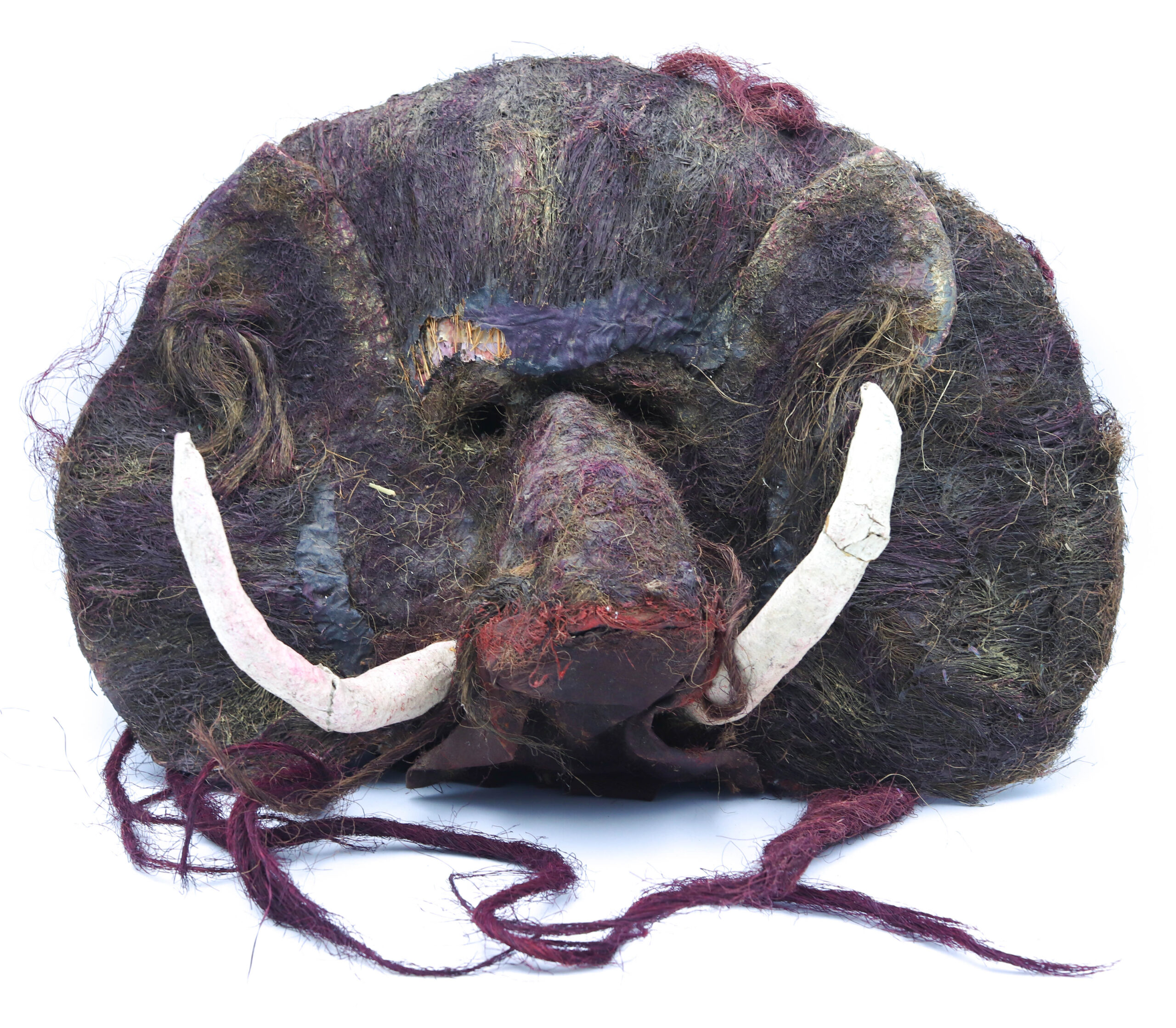 Javali Voltar ONAT-280 Metadados Método de AquisiçãoProdução > Tribo de Atuadores Ói Nóis Aqui TraveizNúmero de RegistroONAT.00228CategoriaFísicoDenominaçãoMáscaraData1985CriaçãoIsabella LacerdaExecuçãoTribo de Atuadores Ói Nóis Aqui TraveizAtividadeTeatro Infantil > A Incrível História de Héracles | Celebração > Teatro de Rua > Teon - Morte em Tupi-GuaraniLocal de ProduçãoAmérica do Sul > Brasil > Rio Grande do Sul > Porto AlegreDimensões Altura (cm)42 Largura (cm)57 Profundidade (cm)35 TécnicaTécnica mistaMaterialidadeArame | Gesso | Grampo metálico | Papel | Sisal | Tecido | Tinta acrílica Hidra Peitoral Coro Calibans Voltar para a lista de itens